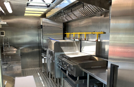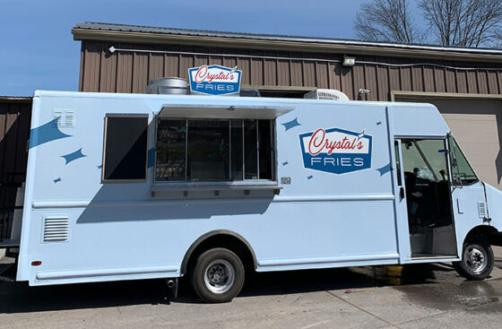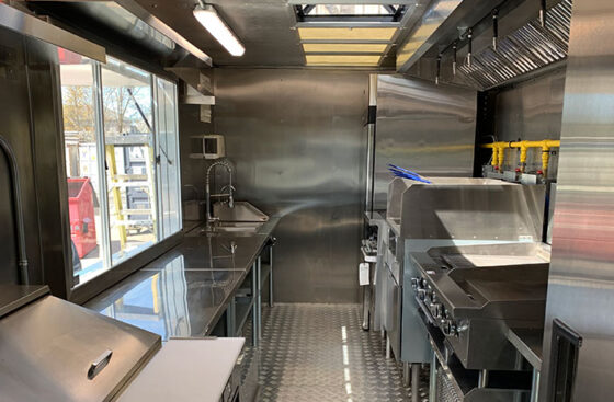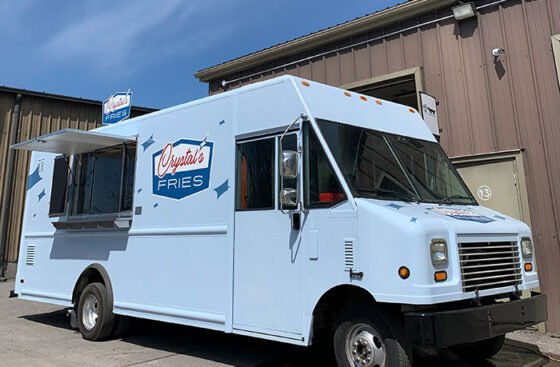 Crystal’s Fries is a classic catering truck servicing job site lunches. It’s a spacious build, that can easily service a very busy lunch rush. There are also some aesthetic details like a sky light, which creates an enjoyable working experience in the kitchen.